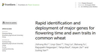 (7) Jizhong Wu, Linyi Qiao, Ying Liu, Bisheng Fu, Ragupathi Nagarajan, Yahya Rauf, Haiyan Jia, Liuling Yan*. Rapid identification and deployment of major genes for flowering time and awn traits in common wheat. Frontier in Plant Science. 2022, 13: 992811