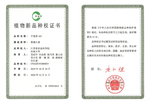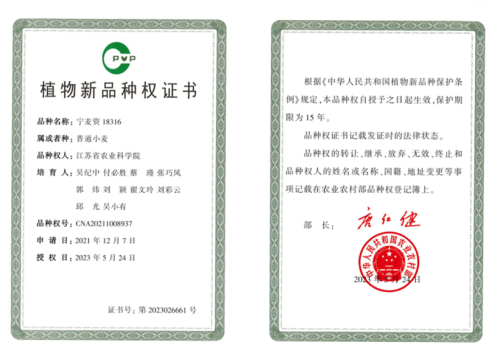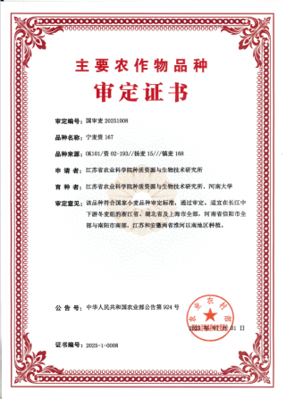 1. 主推品种:2022年,宁麦资126、宁麦资119被列为江苏省淮南麦区的主推品种,宁麦资166、宁麦资958被列入适宜示范推广的品种;2023年,宁麦资126被列入江苏省淮南麦区主推品种,宁麦资119、宁麦资166被列入可扩大示范推广的品种。