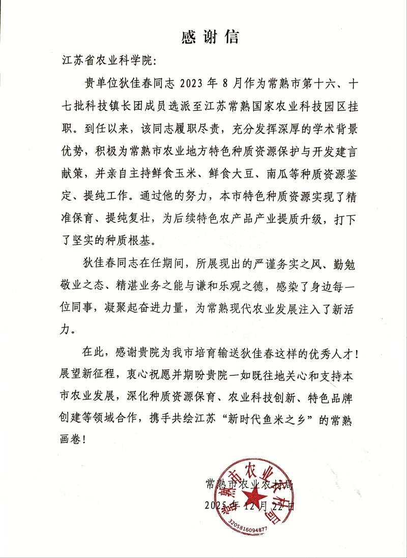 12月25日,常熟市农业农村局总农艺师钱彪一行莅临我院种质资源与生物技术研究所交流座谈。资源所所长赵涵、副所长王宁及种质资源保护团队技术骨干共同参与,座谈会由王宁副所长主持。